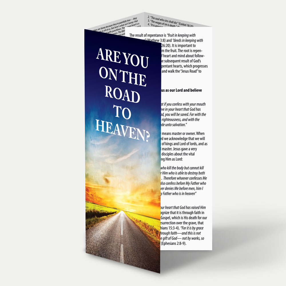 Are You on the Road to Heaven? is a bold evangelism tract that shares the Gospel with clarity and urgency. It explains eternity, heaven, and hell with Scripture. Readers are challenged to consider where they will spend eternity.